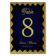 Navy Blue and Gold Glitters Wavy Retro Wedding Table Number