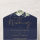 Navy Blue And Gold Greenery Monogram Wedding All In One Invitation