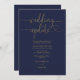 Navy Blue And Gold Heart Script Wedding Update Invitation