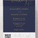 Navy Blue And Gold Hearts Script QR Code Wedding All In One Invitation