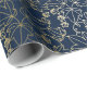Navy Blue and Gold Ivy Leaf Floral Pattern Wrapping Paper