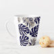 Modern navy blue and gold monstera and palm leaves tropical latte mug. The elements of this gorgeous design are a pattern made of dark blue monstera and palm leaves with gold outline and your monogram in a frame.