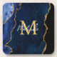 This coaster features an elegant and glamourous agate marble background with geode gemstone detailing and faux gold glitter accents. The monogram combines handwritten script and modern sans serif fonts for a classy and sophisticated look. This will make the ideal gift as it can be customised with a name and initial. The deep blue hues make it perfect for autumn fall and winter.