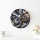 Navy Blue and Gold Marble Painting Abstract Large Clock