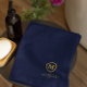 This personalised towel set is simple, sophisticated and elegant. It features a navy blue background with a gold monogram and script typography for your personalisation. Colours can be customised to your choosing