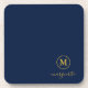 This personalised coaster set is simple, sophisticated and elegant. It features a navy blue background with a gold monogram and script typography for your personalisation. Colours can be customised to your choosing