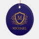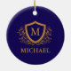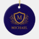 Navy Blue and Gold Personalised Monogram Name Ceramic Ornament