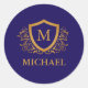Navy Blue and Gold Personalised Monogram Name Classic Round Sticker