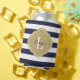 Navy Blue and Gold Preppy Stripes Monogram Can Cooler