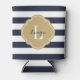 Cute trendy monogrammed can or bottle cooler with a preppy nautical stripe pattern. Personalise it with a custom monogram or other text in a chic quatrefoil frame. Click Customise It to change text and fonts to create a unique one of a kind gift for your bridesmaids and wedding party! Contact me before ordering to customise patterns or design to coordinate with any wedding colours.