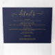 All in one navy blue tri-fold wedding invitation featuring elegant gold typography. The invitation includes your celebration guest information details and a detachable RSVP card. Designed by Thisisnotme©