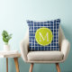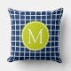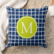 Navy Blue and Lime Green Lattice Monogram Cushion