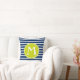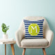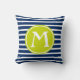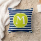 Navy Blue and Lime Green Stripe Monogram Cushion