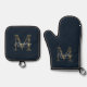 Navy Blue and Metallic Gold Monogram Script Oven Mitt & Pot Holder Set