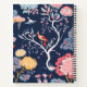 A lovely notebook design which has a bold, colourful pattern of flowers and birds in pink, yellow and white set against a deep navy blue background. Perfect for the school, office or home.