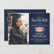 Navy Blue and Pink Graduation Photo Save the Date Postcard