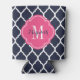 Navy Blue and Pink Moroccan Quatrefoil Monogram Can Cooler