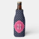 Navy Blue and Pink Polka Dots Monogram Bottle Cooler