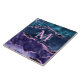This tile features an elegant and glamourous navy blue and teal blue agate marble background with faux purple glitter accents. The monogram combines handwritten script and modern sans serif fonts for a classy and sophisticated look. This will make the ideal gift as it can be customised with a name and initial. The sequins and distressed texture creates the perfect blend of chic and grunge.