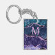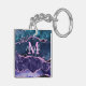 This keychain features an elegant and glamourous navy blue and teal blue agate marble background with faux purple glitter accents. The monogram combines handwritten script and modern sans serif fonts for a classy and sophisticated look. This will make the ideal gift as it can be customised with a name and initial. The sequins and distressed texture creates the perfect blend of chic and grunge.