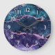 Navy Blue and Purple Glitter Ocean Agate Large Clock