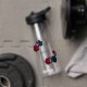 Beautiful water bottle featuring dark navy blue and red flowers and gold leaves.