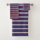 Navy Blue and Red Nautical Stripes Pattern Stylish Bath Towel Set