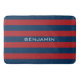 Navy Blue and Red Rugby Stripes with Custom Name Bath Mat