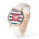 Navy Blue and Red Stripes Pattern Monogram Watch