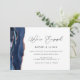 a simple script design and rose gold and navy blue agate. You can personalise the text, image and colour detail on this engagement party invite template.