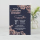 Navy Blue and Rose Gold Floral Graduation Invitation