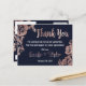Navy Blue and Rose Gold Floral Thank You Postcard