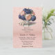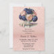Navy Blue and Rose Gold Floral Wedding Invitation