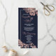 Elegant, chic, and simple modern faux printed rose gold flowers and typography on fashionable navy blue background, wedding program cards. This classic and sophisticated design is perfect for the trendy and stylish marrying couple. Personalise with your own message on the front as well as a customised monogram initial on the back. All photo print design.