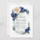 Elegant navy blue and rust flowers wedding invitations