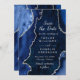 Navy Blue and Silver Agate Marble Save The Date Invitation