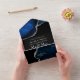 Navy blue and faux silver glitter agate stone wedding invitation with accents of black customisable to your event specifics.
