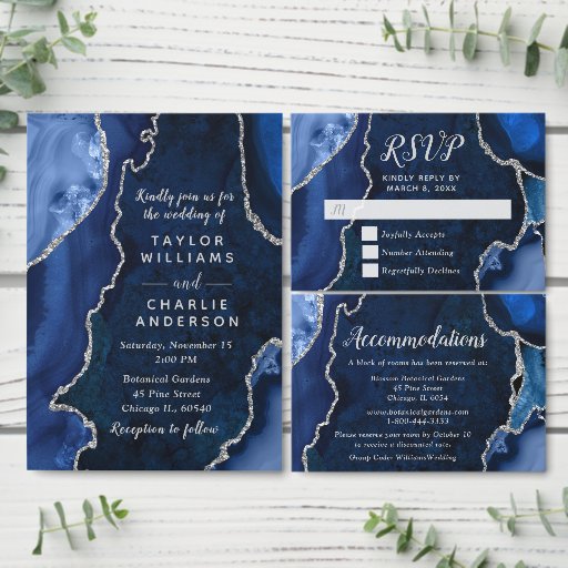 Navy Blue and Silver Agate Marble WeddingDesigned by Kirsty W