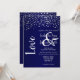 Wedding Invitation. Featuring a modern wedding styled invitation in a dark navy blue background with silver confetti dots and the word love in bold print. ⭐This Product is 100% Customisable. Graphics and / or text can be added, deleted, moved, resized, changed around, rotated, etc... 99% of my designs in my store are done in layers. This makes it easy for you to resize and move the graphics and text around so that it will fit each product perfectly. 📌 (Please be sure to resize, change, add, delete or move any graphics or text if needed before ordering) You can also "TRANSFER DESIGN" on other Zazzle products and adjust the design to fit most of Zazzle items. (click on the transfer area below) Some of the text graphics have ready to fill in the box(es) or you can Click on the "CUSTOMIZE" button to add, move, delete, resize, background colour or change any of the font or graphics. The design is made with high resolution vector and/or digital graphics for a professional print. 📌NOTE: (THIS IS A PRINT. All Zazzle product designs are "prints" unless otherwise stated under "About This Product" area) The design will be printed EXACTLY like you see it on the screen and on the product...so please make sure when you do your changes on the resizing of any of the graphics or text that it fits in the areas correctly and that your spelling and wording is how you like it to be in size, colour and font. If you have any questions about the "DESIGN ONLY" or need help please contact me through my store link: https://www.zazzle.com/store/LetsUDesignIt (Copy and Paste) I'll be happy to help. ⭐ ALL OTHER QUESTIONS SUCH AS (shipping, refund, the printing being incorrect, the product itself, etc...) please contact Zazzle or the Maker ⭐DIRECTLY⭐. Thank you for the support and stopping by my store - LetsUDesignIt. ⭐⭐⭐ ZAZZLE promises 100% satisfaction.