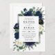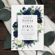 Navy Blue and Silver Elegant Ivory Floral Wedding Invitation