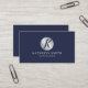 Navy Blue and Silver Elegant Monogram Business Card