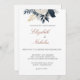 Navy Blue and Silver Floral Wedding Invitation