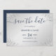 Navy Blue and Silver Glitter Script Wedding Save The Date