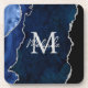 Navy Blue and Silver Marble Agate Coaster