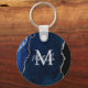 Navy Blue and Silver Marble Agate Key Ring