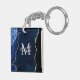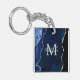 Navy Blue and Silver Marble Agate Key Ring
