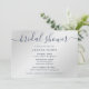 Elegant bridal shower invitation in navy blue and silver colours and featuring a modern script font. Matching items available.