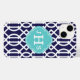 Navy Blue and Turquoise Modern Trellis Monogram Case-Mate iPhone Case