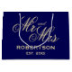Navy blue and vanilla elegant Mr and Mrs wedding Large Gift Bag for party favours and bridal shower goodies. Small, medium and big sizes. Customisable stringed bags with surname and established date of marriage. Add your own surname. Customisable colours. Glamourous typography template for just married couple, guests, bridesmaids etc.