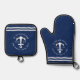 Navy Blue and White Anchor Personalised Nautical Oven Mitt & Pot Holder Set